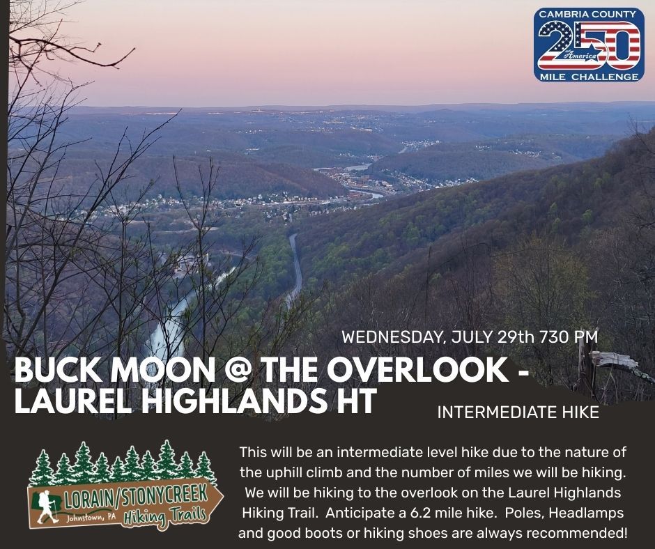 7/29/2026 - 730PM - Buck Moon @ The OVERLOOK - Laurel Highlands HT (6.2 miles)